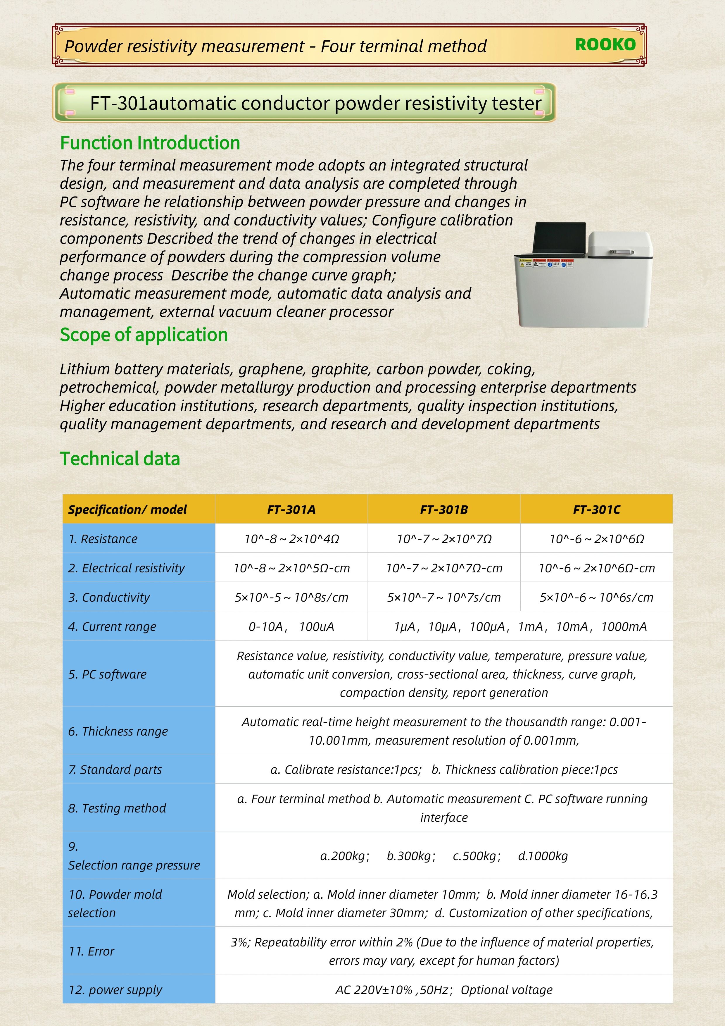 FT-8100 Four Probe Powder Conductivity Tester