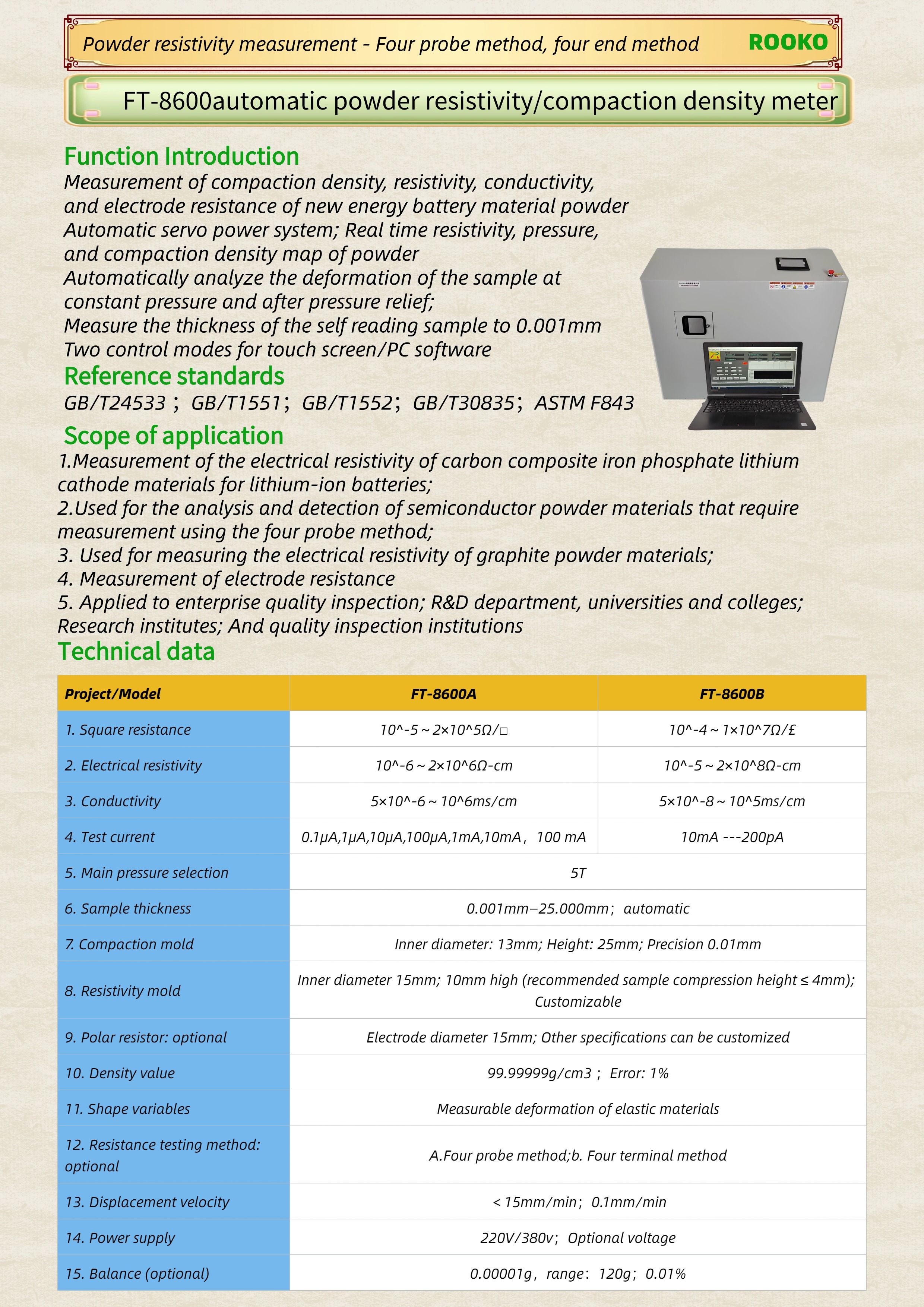FT-8600 automatic powder resistivity/compaction density meter