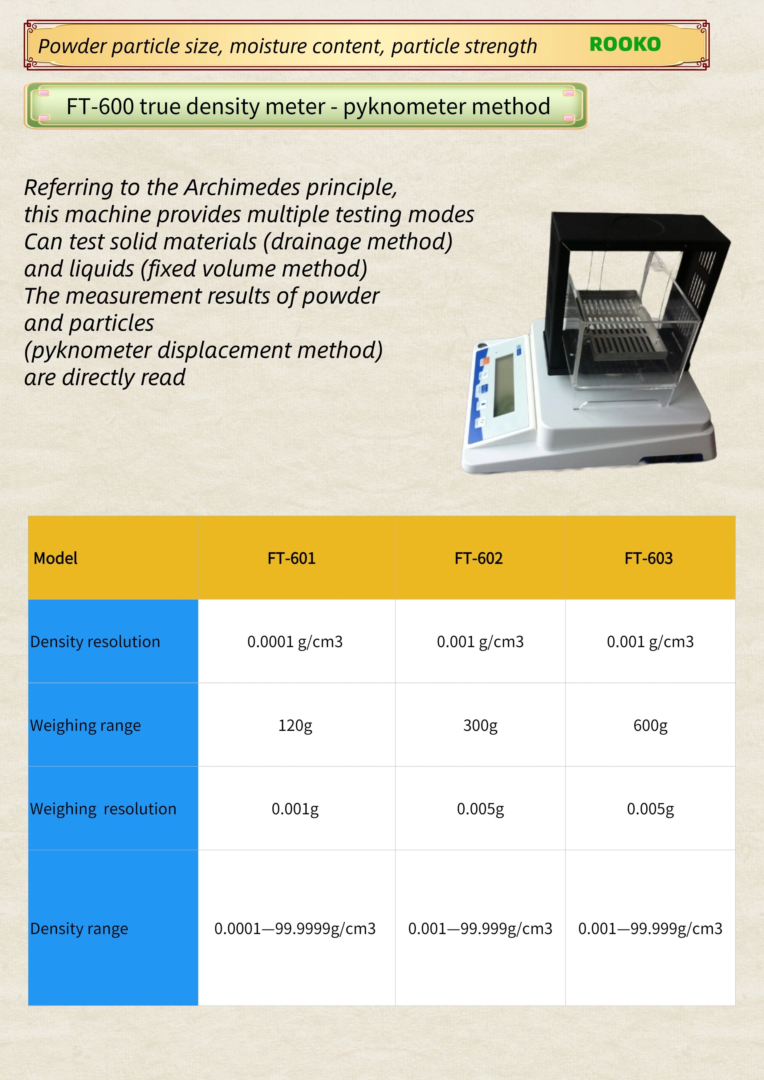 FT-600 true density meter - pyknometer method